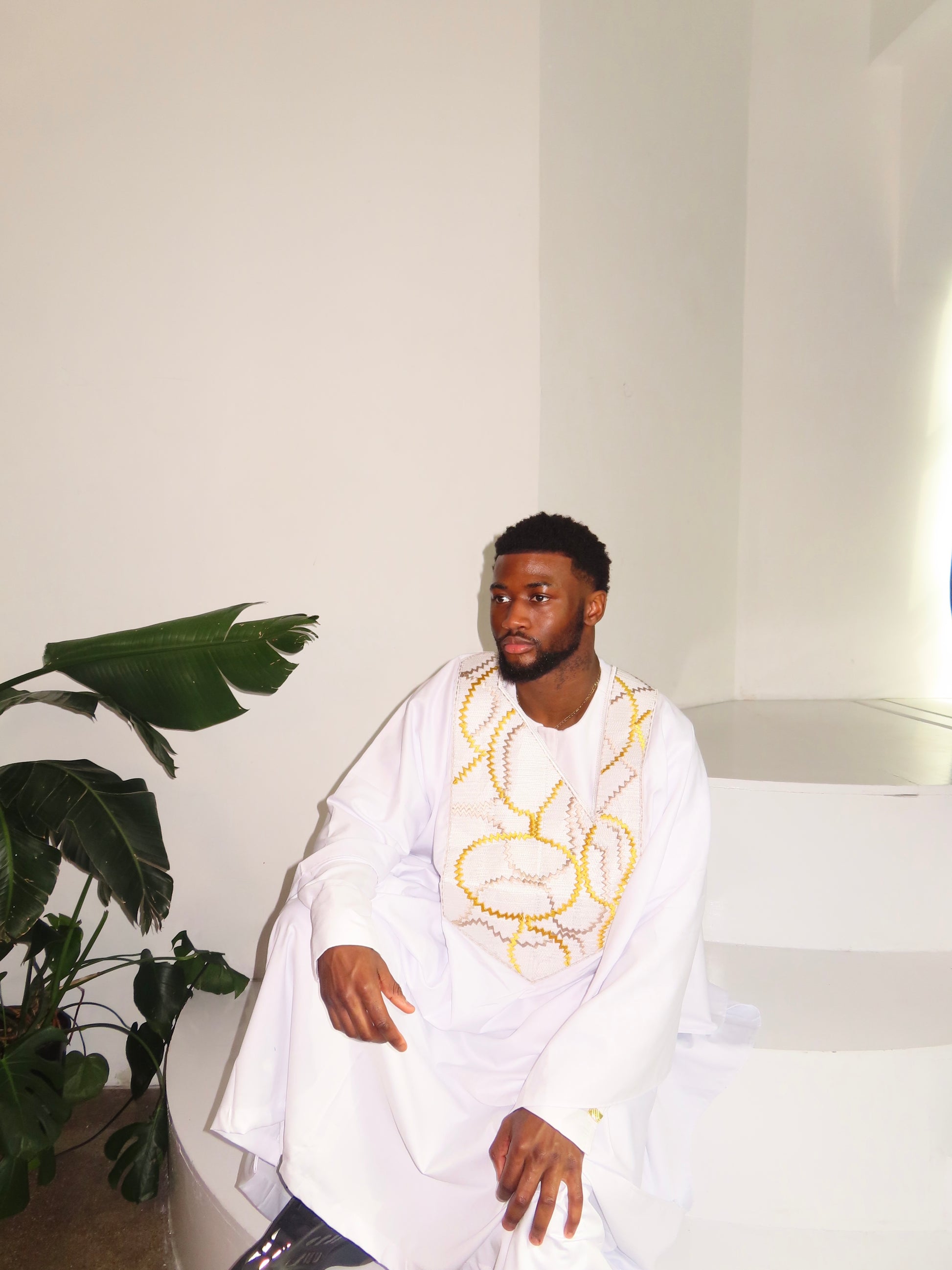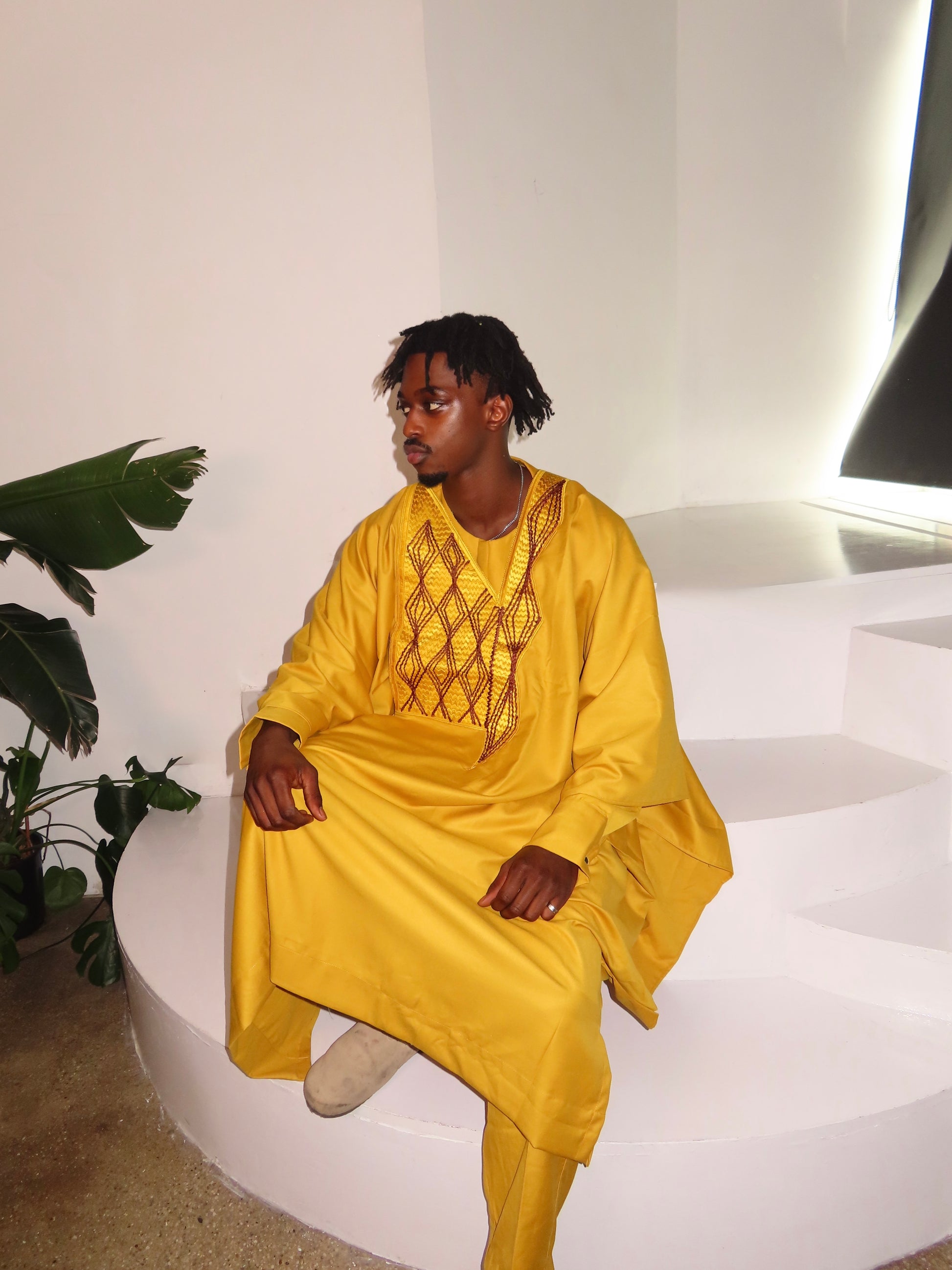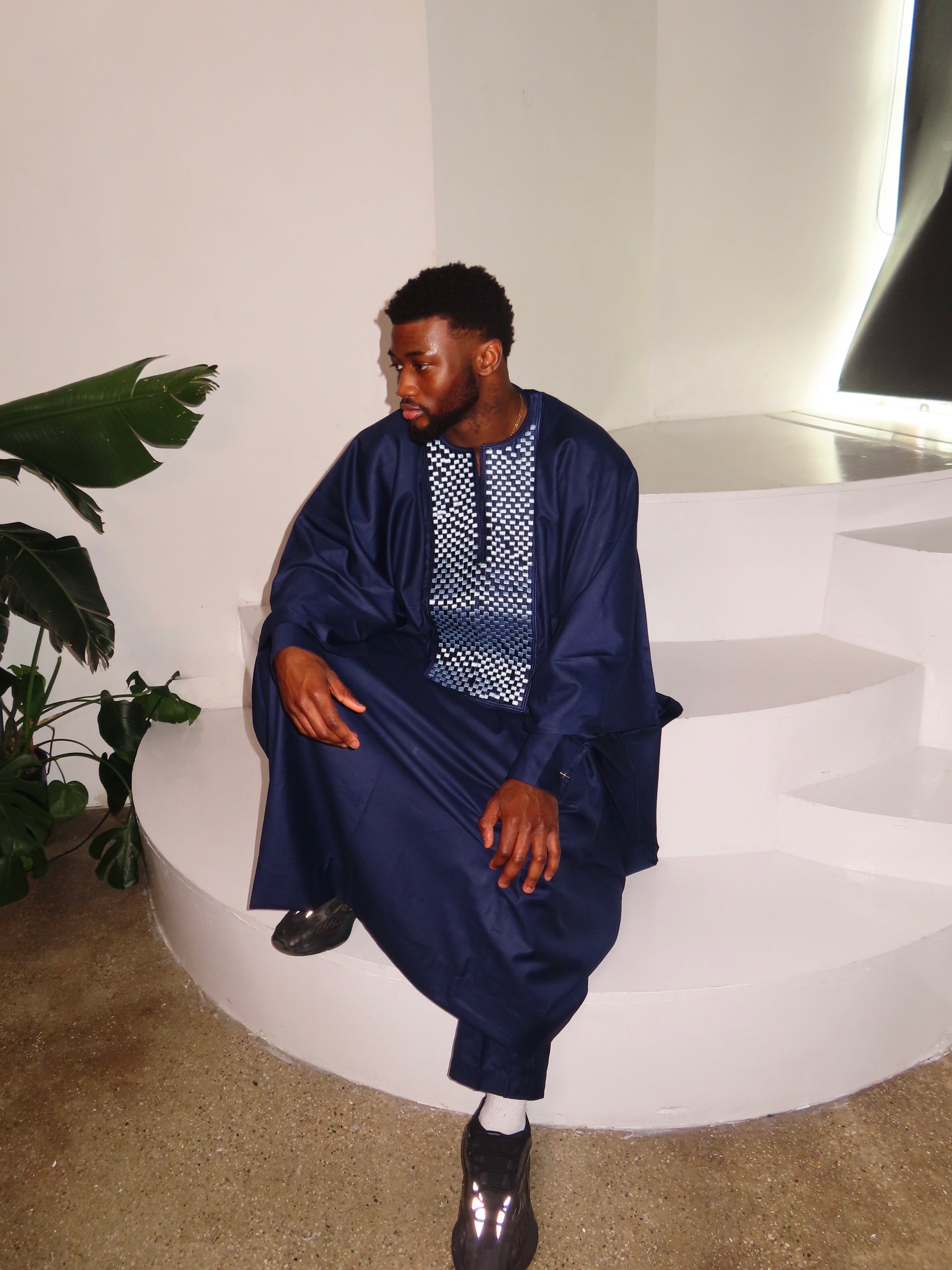 This 3-piece set is designed with both elegance and comfort in mind, a traditional silhouette with embroidered chest detailing, this piece blends classic West African craftsmanship with a modern look.